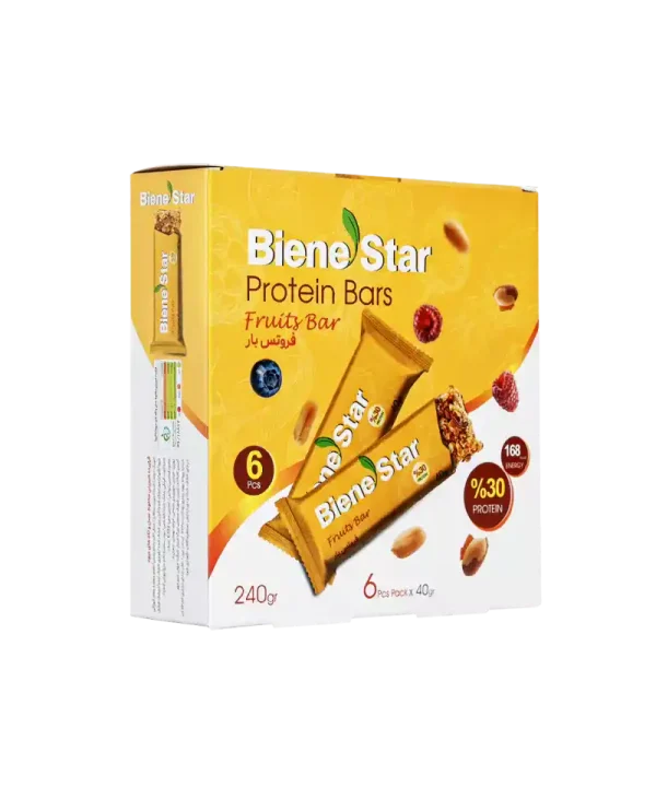 فروتس بار یکی از محصولات گروه پروتئین بار میباشد. یک گزینه سالم و جذاب با ترکیبی منحصر به فرد از مواد اولیه طبیعی است که انرژی و مواد مغذی مورد نیاز شما را تامین می کند. این محصول خوشمزه میوه ای علاوه بر پروتئین، حاوی انواع آنتی اکسیدان ها، ویتامین ها، مواد معدنی است و به شما انرژی طبیعی می بخشد.