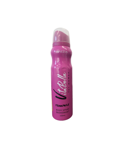 این اسپری بدن از برند ویتابلا است که در ایران تولید و عرضه می شود. اسپری بدن ویتابلا ماندگاری بالایی نسبت به دیگر اسپری های بدن می باشد. علت ماندگاری بالای این اسپری وجود پرفیوم باکیفیت در آن است.