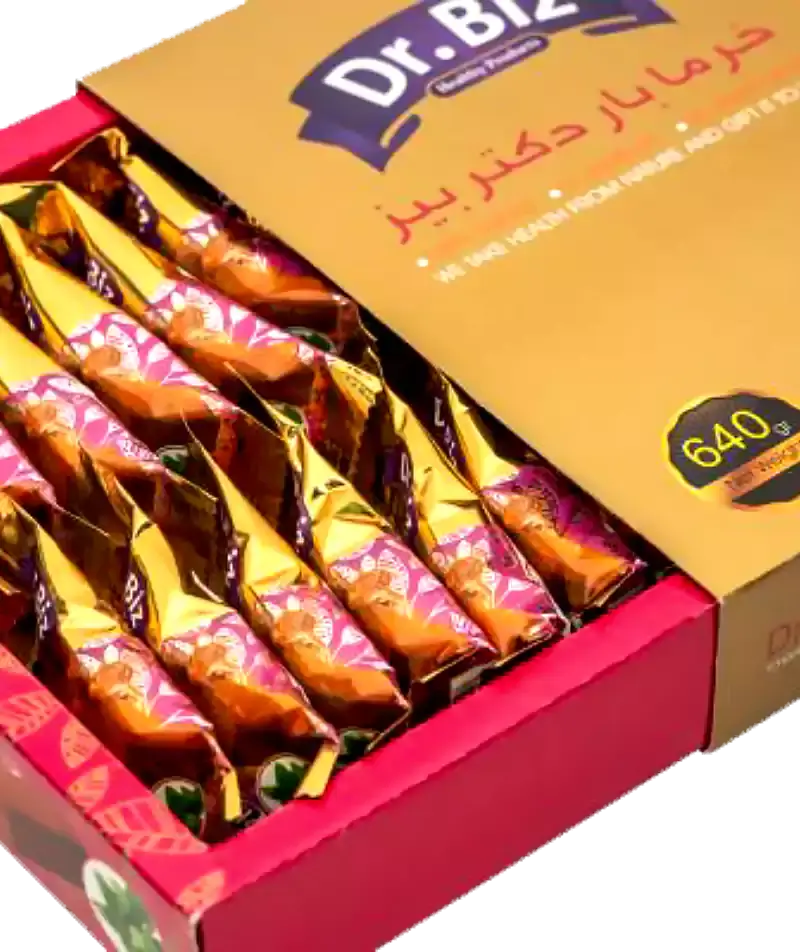 خرما بار تقویتی دکتر بیز دارای زنجبیل، بادرنجبویه، رازیانه است که ترکیب این سه گیاه با خرما، خواص آن ها را چند برابر کرده است.