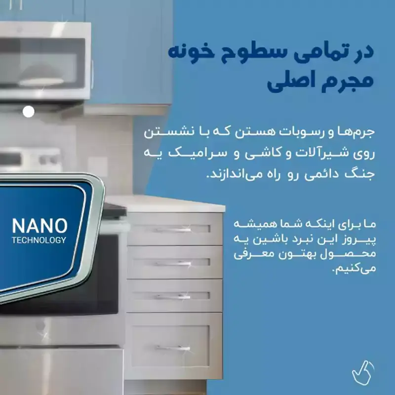 ▪️جرم گیر نانوسان تا حد زیادی تغییر رنگ بوجود آمده از شوینده های اسیدی هم چون جوهر نمک را از بین می برد.